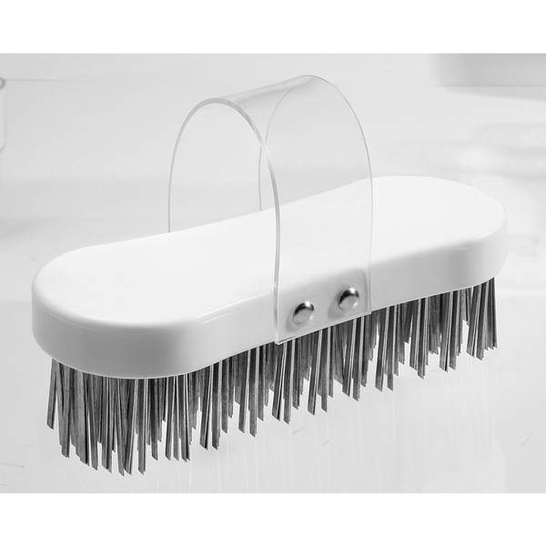 Hackstockbürste, Flachdraht verzinkt, Stärke 3,3 x 0,6 mm hart, zur Reinigung von Holz-Hackstöcken und -platten, 185 x 75 x 60 x 37 mm